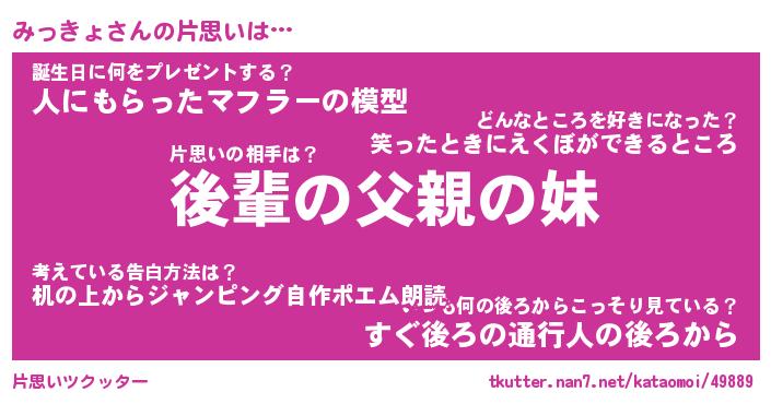 | 意味不明あだ名 | 『ペロリンみっきょ』『永久保存みっきょ』 |