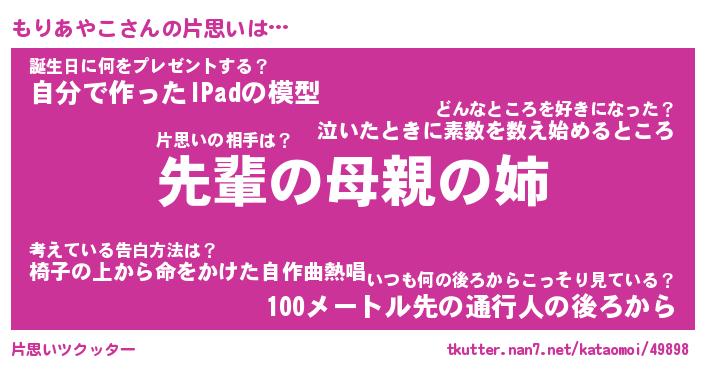 | 男性向けラノベタイトル風あだ名 | 『もりあやこの憂鬱』 |