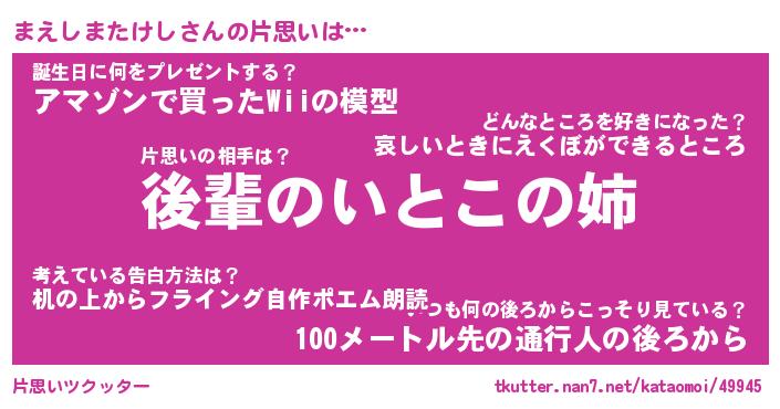 | ヘコむあだ名 | 『まえにゅー』『豆乳』『まえお』 |
