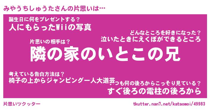 | 胡散臭い通販商品みたいなあだ名 | 『モテモテ間違いなし霊験あらたかなお札…その名も「みやうちしゅうた」』 |