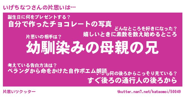 | 男性向けラノベタイトル風あだ名 | 『いげちなつの憂鬱』 |