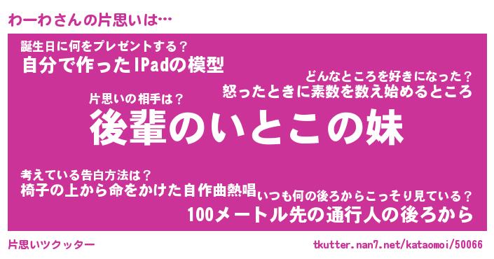 | ヘコむあだ名 | 『わーにゅー』『つくし』 |
