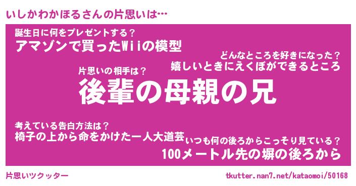 | ヘコむあだ名 | 『いしにー』『なまこ酢』『いしを』 |