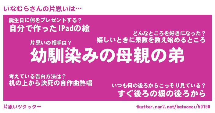 | 男性向けラノベタイトル風あだ名 | 『いなむらの憂鬱』 |