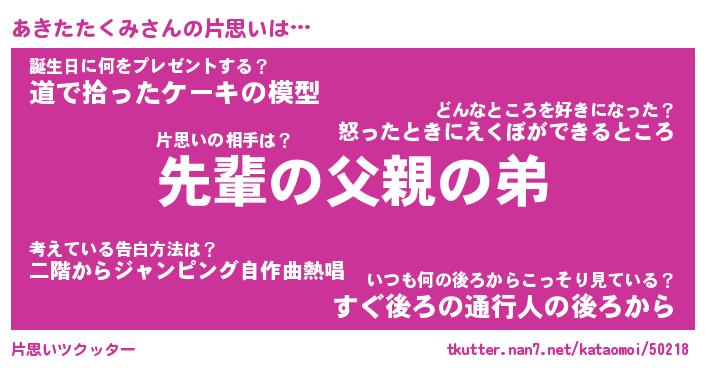 | 胡散臭い通販商品みたいなあだ名 | 『モテモテ間違いなしブレスレット…その名も「あきたたくみ」』 |