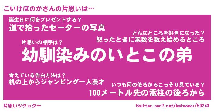| ヘコむあだ名 | 『こいもー』『豆乳』『こいっちょ』 |