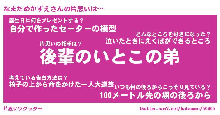 | 胡散臭い通販商品みたいなあだ名 | 『モテモテ間違いなし水晶球…その名も「なまためかずえ」』 |