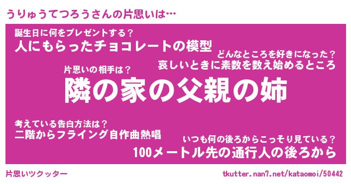 | 胡散臭い通販商品みたいなあだ名 | 『モテモテ間違いなし水晶球…その名も「うりゅうてつろう」』 |
