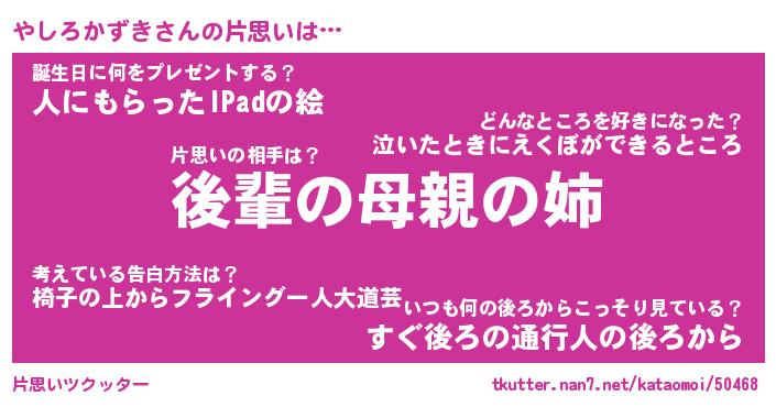 | ヒーロー風カッコイイあだ名 | 『スーパーヤシロカズキ』『天弓騎士ヤシ』 |