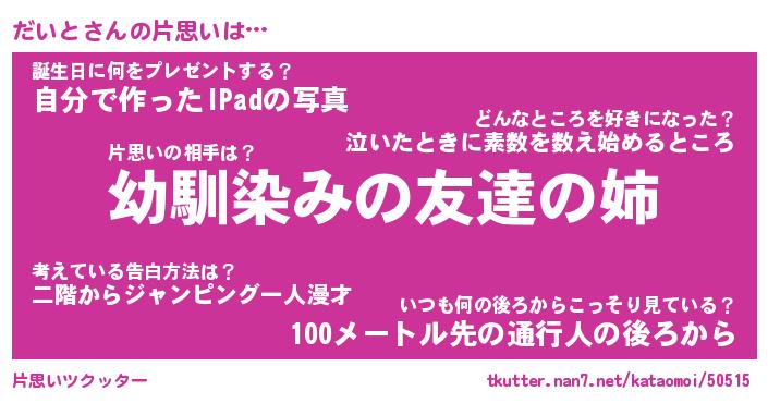 | 2回繰り返すあだ名 | 『だいだい』『だだいい』『ぬれぬれ』 |