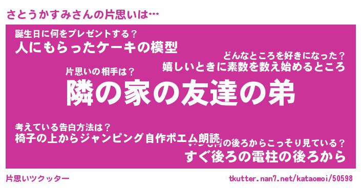 | ヒーロー風カッコイイあだ名 | 『スーパーサトウカスミ』『天弓騎士サト』 |