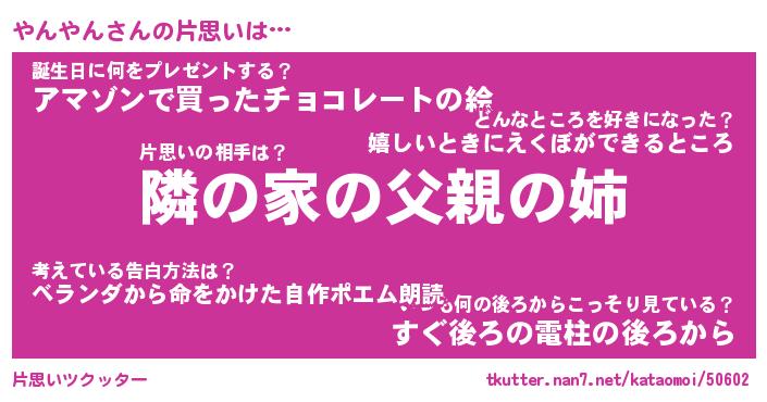 | 初対面の印象『派手』彼女の名前『やん子』 |