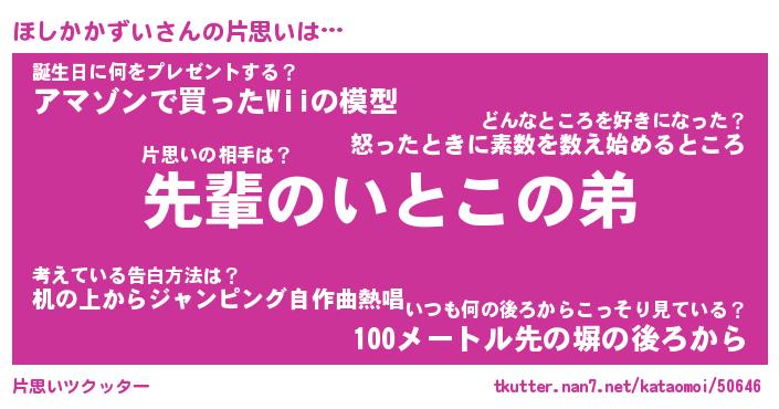 | 胡散臭い通販商品みたいなあだ名 | 『モテモテ間違いなし水晶球…その名も「ほしかかずい」』 |