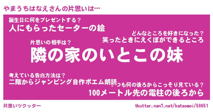 | 女子向けラノベタイトル風あだ名 | 『(仮)やまうちはなえのやんごとなき事情』 |
