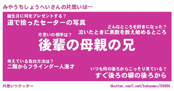 | ポケモン風あだ名 | 『ミヤチュウ』『ミヤウダネ』 |
