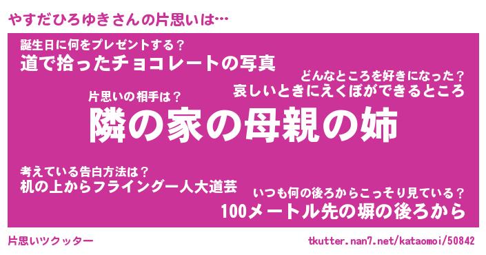 | 胡散臭い通販商品みたいなあだ名 | 『必ず成功するブレスレット…その名も「やすだひろゆき」』 |