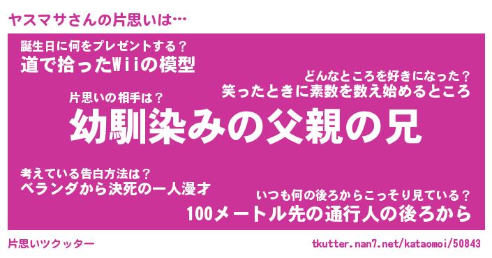 | 意味不明あだ名 | 『ペロリンヤスマサ』『永久保存ヤスマサ』 |