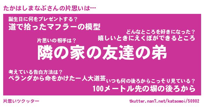 | 胡散臭い通販商品みたいなあだ名 | 『必ず成功する霊験あらたかなお札…その名も「たかはしまなぶ」』 |