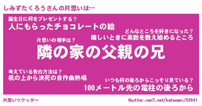 | ヒーロー風カッコイイあだ名 | 『スーパーシミズタクロウ』 |
