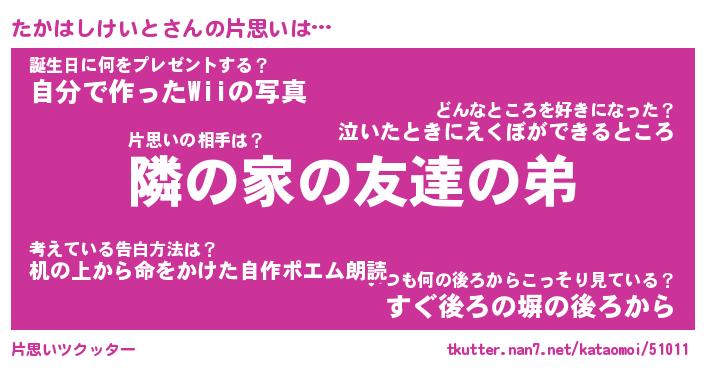 | 恥ずかしいあだ名 | 『プリティーたかはしけいと』『たかちん』 |