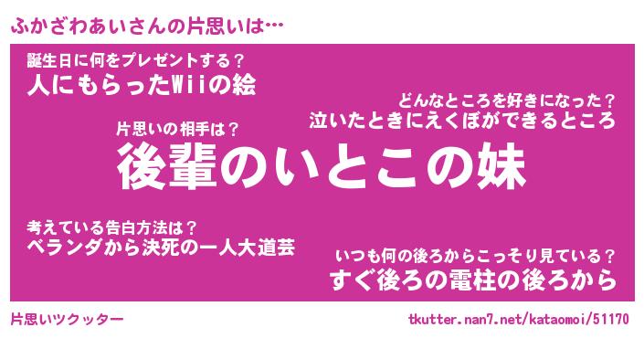 | 胡散臭い通販商品みたいなあだ名 | 『億万長者になれる水晶球…その名も「ふかざわあい」』 |