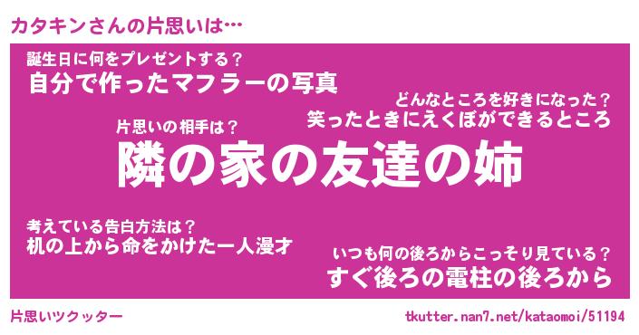 | 意味不明あだ名 | 『ペロリンカタキン』『永久保存カタキン』 |
