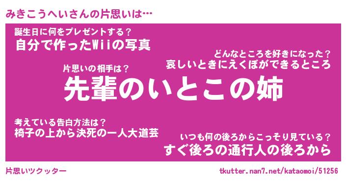 | ヘコむあだ名 | 『みきにゅー』『つくし』 |