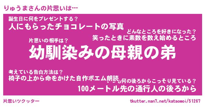 | 男性向けラノベタイトル風あだ名 | 『りゅうまの憂鬱』 |