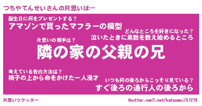 | 男性向けラノベタイトル風あだ名 | 『つちやてんせいの憂鬱』 |