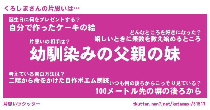 | ヘコむあだ名 | 『くろにゅー』『牛乳』『くろ太郎』 |