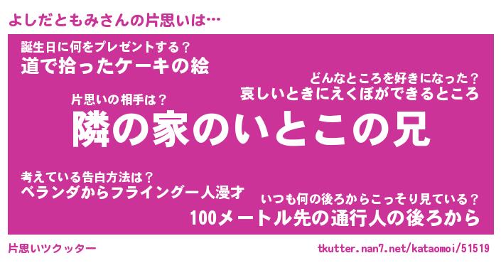 | 胡散臭い通販商品みたいなあだ名 | 『モテモテ間違いなし霊験あらたかなお札…その名も「よしだともみ」』 |