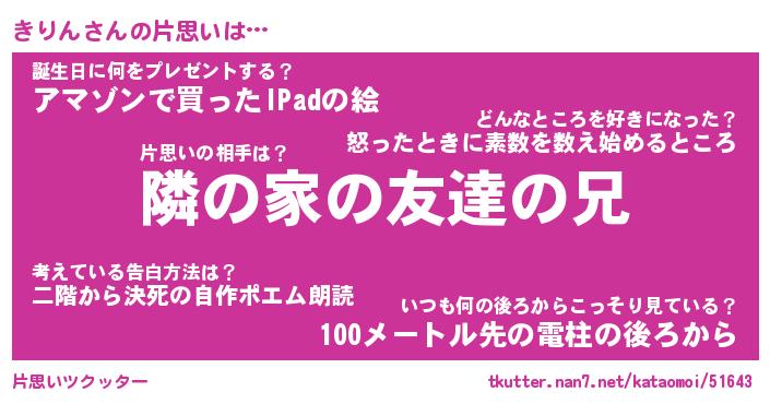 | 男性向けラノベタイトル風あだ名 | 『きりんの憂鬱』 |