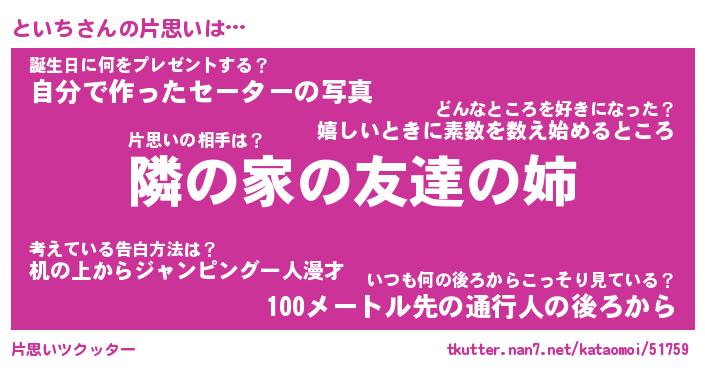 | ヘコむあだ名 | 『といっふぃ~』『つくし』『といを』 |
