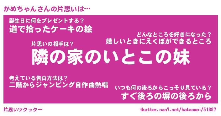 | 意味不明あだ名 | 『ペロリンかめちゃん』 |