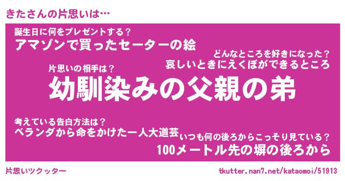 | 男性向けラノベタイトル風あだ名 | 『きたの憂鬱』『ノーゲーム・ノーキタ』 |