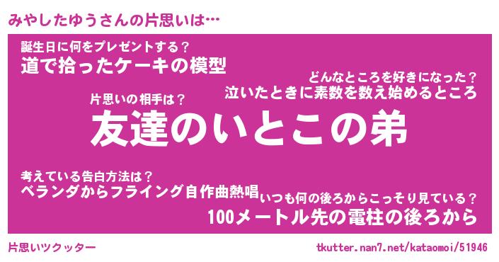 | ヘコむあだ名 | 『みやもー』『牛乳』『みや太郎』 |
