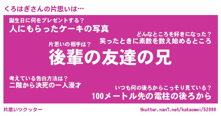 | ヘコむあだ名 | 『くろっふぃ~』『牛乳』『くろを』 |