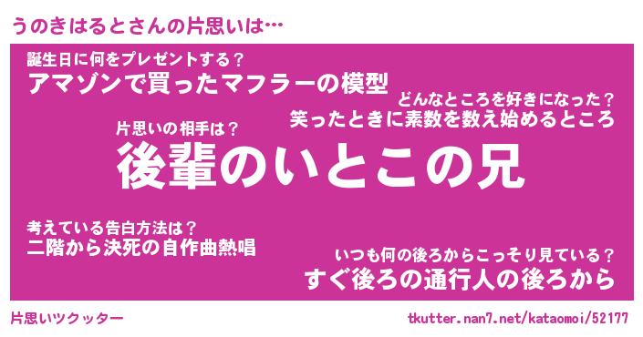 | ヘコむあだ名 | 『うのにゅー』『つくし』 |
