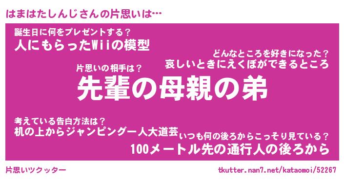 | 男性向けラノベタイトル風あだ名 | 『はまはたしんじの憂鬱』 |
