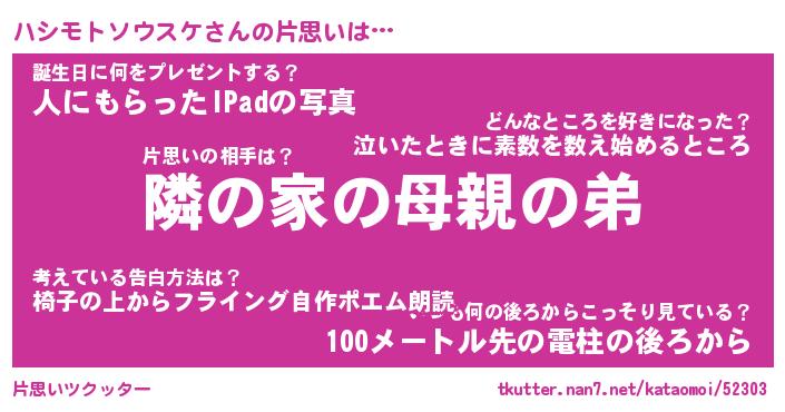 | 胡散臭い通販商品みたいなあだ名 | 『必ず成功するブレスレット…その名も「ハシモトソウスケ」』 |