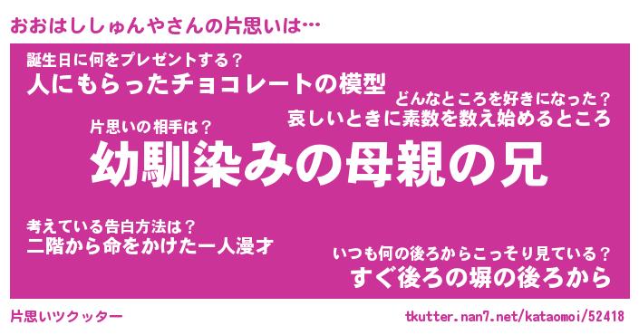 | 男性向けラノベタイトル風あだ名 | 『おおはししゅんやの憂鬱』 |