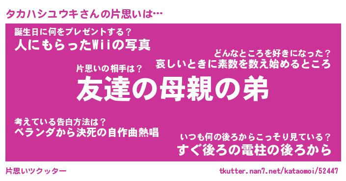 | ツイッター | タカハシユウキさんのツイッターID『fukuyoka_man』 |