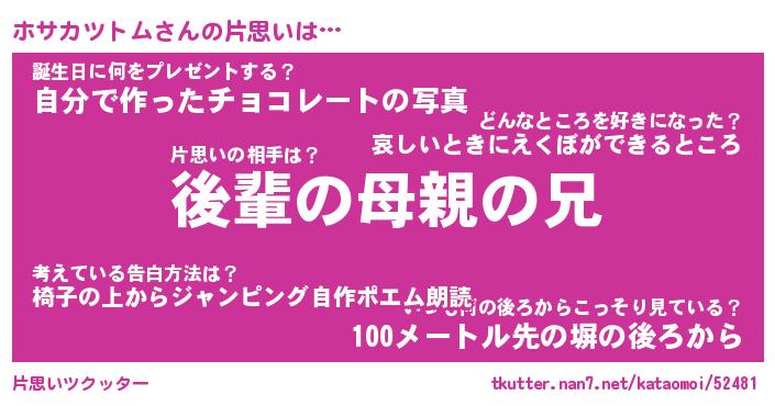 | 意味不明あだ名 | 『ペロリンホサカツトム』 |