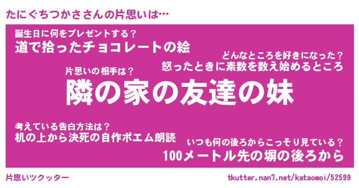 | 2回繰り返すあだ名 | 『たにたに』『たたにに』『ぬぷぬぷ』 |