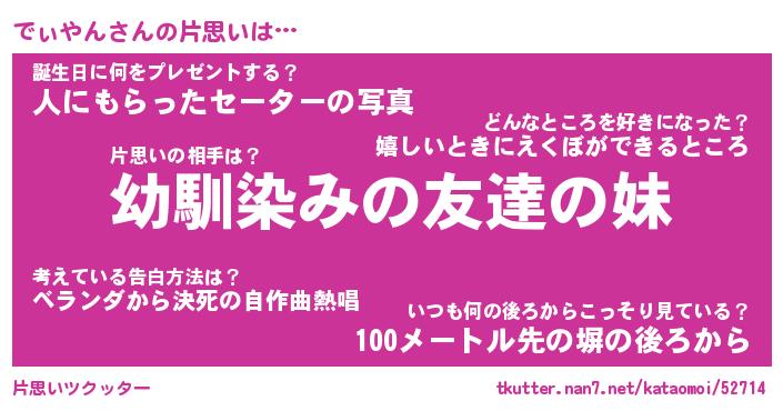 | 意味不明あだ名 | 『ペロリンでぃやん』『永久保存でぃやん』 |