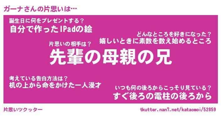 | ヘコむあだ名 | 『ガーふぇ~』『なまこ酢』 |