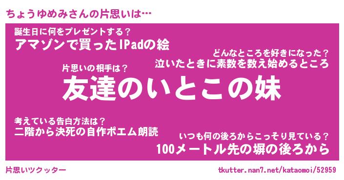 | ヘコむあだ名 | 『ちょにゅー』『つくし』『ちょを』 |