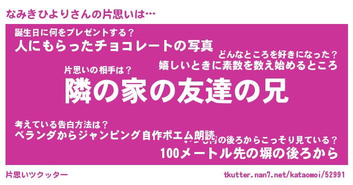 | ヘコむあだ名 | 『なみもー』『酢こんぶ』『なみを』 |