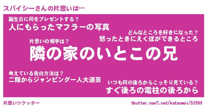 | 男性向けラノベタイトル風あだ名 | 『スパイシーの憂鬱』 |