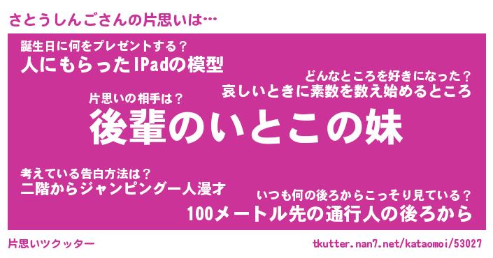 | ヒーロー風カッコイイあだ名 | 『スーパーサトウシンゴ』『黄金騎士サト』 |